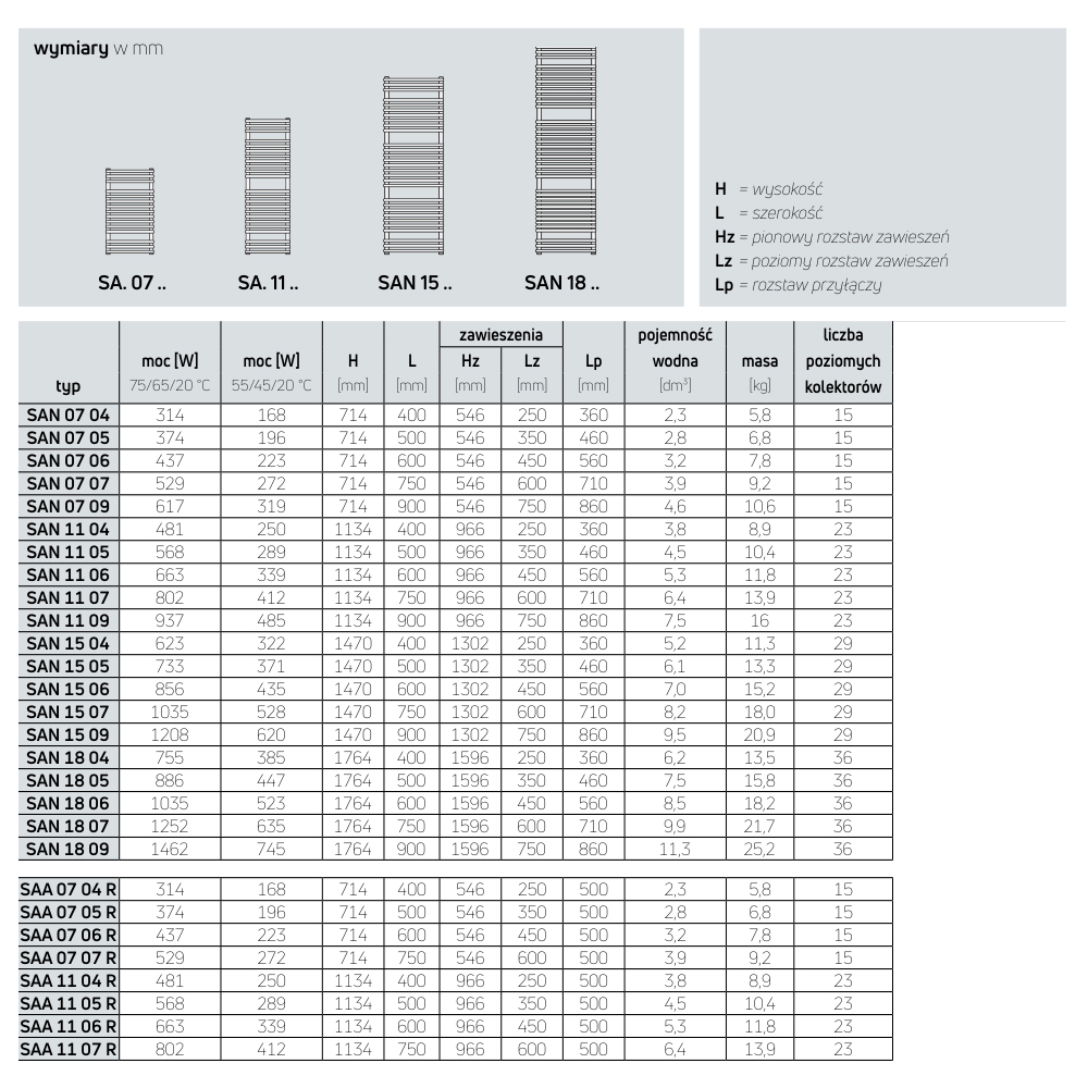 Funkcjonalny układ grzejnika oraz dokładna specyfikacja techniczna dostępna w formie dokumentacji Grzejniki łazienkowe Purmo